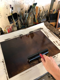 I gather natural material from all over the world and transfer its texture on copper or zinc plate in an attempt to freeze and capture the process of time. I select elements that characterize the botanical identity of cities I visit and live in. Sometimes, it travels a long way with me before I carefully select and prepare each leaf and flower in my home studio. This process can take up to several weeks during which the flora will slowly dry flat, change colors and shapes, become very delicate, fragile, and gets ready to go through the etching press.